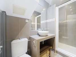 27 sqm, 2nd floor, small 18th century building, no lift/elevator, living room with sofa bed, 1 bedroom (double bed), shower room with WC, equipped kitchen (WM/D, MW oven) -open plan ; electric heating, double glazing, modern furniture, wardrobe, TV LCD, good condition, wooden floor, beams, stones, light, quiet, lot of charm