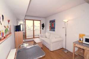 23 sqm, 8th floor, beautiful modern building, lift/elevator, entrance, living room, with sofa bed, shower room, separated toilet, equipped kitchenette (MW oven) ; electric heating, double glazing, mixed furniture, wardrobes, TV, good condition, wooden floor, bright, quiet, balcony, South exposure, view