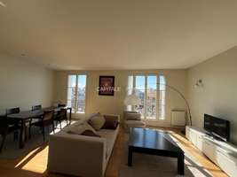 61 sqm, 6th floor, beautiful 19th century stone building, lift/elevator, entrance, living room/dining room, 1 bedroom + 1 room of 6 sqm on courtyard (double bed, sofa bed), bathroom, separated toilet, equipped kitchen (WM, ovens) -open plan; electric heating, double glazing, moderne furniture, wardrobes, TV, good condition, wooden fl, bright, quiet, double exposure, balcony 5 sqm, Eiffel Tower view,
