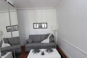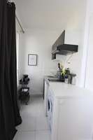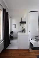 16 sqm, 4th floor, 1900 building, lift/elevator, entrance, living room, with sofa bed, shower room with WC, equipped kitchen (WM, MW oven); electric heating, double glazing, modern furniture, wardrobes, TV, refurbished on 2016, wooden floor, modern, quiet, lively area
