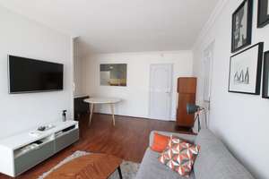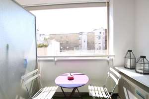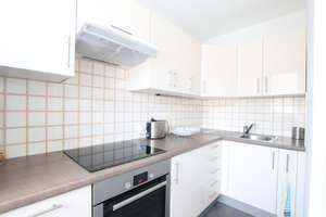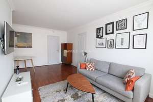 44sqm, 6st floor, modern building with elevator/lift, entrance, living / dining room with sofa, 1 bedroom (double bed), modern bathroom, separated toilet, fully equipped kitchen (DW, WM, dryer, ovens) ; central heating + hot water, modern furniture, wardrobes, balcony 3 sqm, good condition, bright, calm