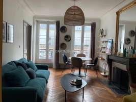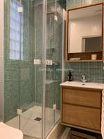 Boulevard du Temple, 55 sqm, 3rd floor with lift / elevator, stone building, entrance, living / dining room, 2 bedrooms, separated kitchen (DW,WM, ovens) ; electric heating, modern shower room with toilet, modern furniture, wardrobes, refurbished by architect, bright, calm, living area
