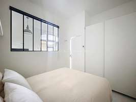 CIVIL CODE, 30sqm, ground floor overlooking courtyard, well-maintained building, entrance hall, living room, and fully equipped open kitchen (dishwasher, refrigerator, microwave...), 1 separate bedroom (double bed) with walk-in closet, 1 bathroom with toilet, renovated in 2026, quiet, bright, very pleasant neighborhood near Rue Mouffetard,