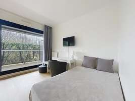 21.85m2, ground floor in secure building with doorman, entryway with walk-in closet, main room, 120cm bed, bathroom with toilet, fully equipped open kitchen (oven, microwave, dishwasher, food processor), renovated, terrace with no neighbors opposite, quiet, sunny, close to public transportation,
