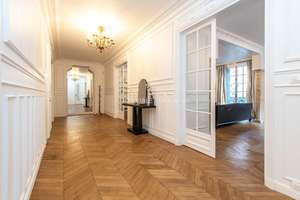 258m2, 3rd floor, Haussmann-style building with concierge, elevator , entrance hall, double living/dining room, continuous balcony, 4 spacious bedrooms with storage space, 2 of which have en-suite bathrooms, bathroom, separate toilet, separate, well-equipped kitchen, individual gas heating, renovated 2 years ago, Excellent condition, hardwood floors, bright, quiet, close to Parc Monceau